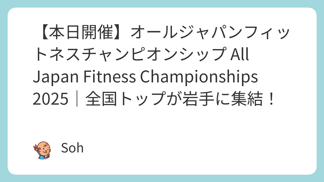 本日、盛岡にて最高峰のフィットネスが幕を開けます。
