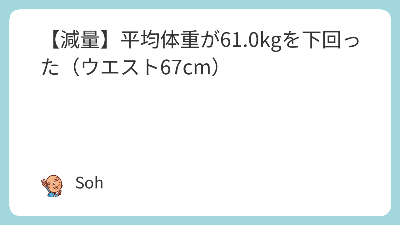 | 週平均体重 | 61.17 kg | 60.97 kg |