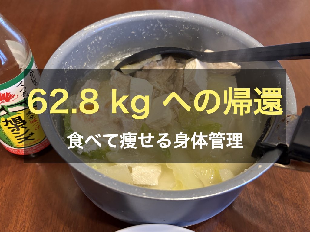 - 今朝: 62.8 kg(「回収させていただきましたぜ」)
