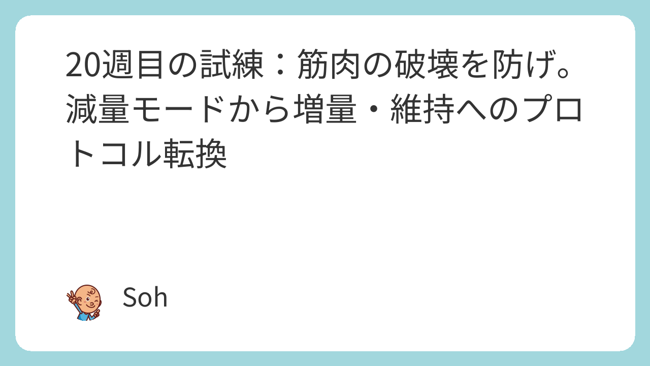 今回の分析に基づき、次月は筋肉量を元の水準に戻し、体重を標準体重に近づける「筋量増量プロトコル」を始動します。