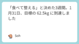 私が期限とした1月31日まで、あと1週間。この日までに目指す62.5kgにします。