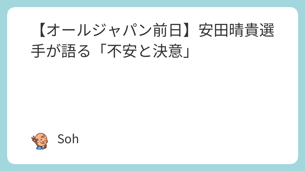 出場選手の一人、安田晴貴選手は、大会に向けた今の率直な気持ち、孤独と緊張の入り混じる心境を素直に語りました。
